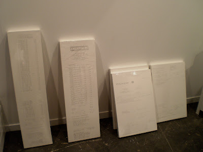 3. A nice surprise success at ARCO was Amaya Gonzalez Reyes's solo project, one of 35 at the fair. The young Reyes hasn't been selected for any biennales yet, but I have a hunch if she keeps it up she could find herself a spot. In her ARCO work, Reyes copied a few months of her receipts onto plain white canvases, one canvas for each receipt. Then she sold each canvas for the amount listed on that receipt. This meant each of her works ranged from around 2 euros to 250 euros--a bargain at almost any fair, and one that buyers dug into with a vengeance. There were piles of them when the fair started, and only a few dozen left by day 2. To boot, the works even look kind of nice.