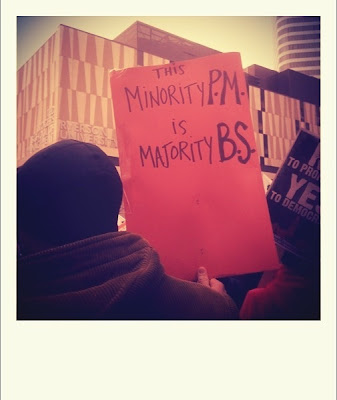 Here's where I did not go today (sadly): the big anti-prorogue protest in downtown Toronto.
