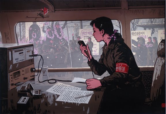 Also, if you want to know more about the way art is produced in North Korea--ie. in state-run factory/studios of up to 1,000 artists--check out Adrian Dannatt's 2009 article from the Art Newspaper or go to the UTAC symposium on Thursday... it features Jane Portal, who's currently based in Boston but who basically built the Korean art collection at the British Museum and who's also authored a key text on North Korean art, "Art Under Control."